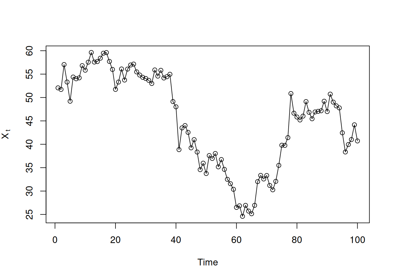donde \(x_t\) es estacionaria, \(w_t\sim wn(0,\sigma_w^2)\) y \(\phi_p\neq 0\). Si \(\mu=\mathrm{E}(x_t)\neq 0\), equivalentemente