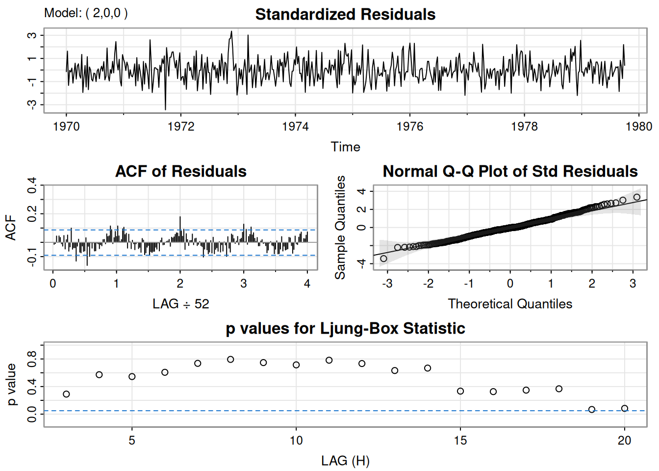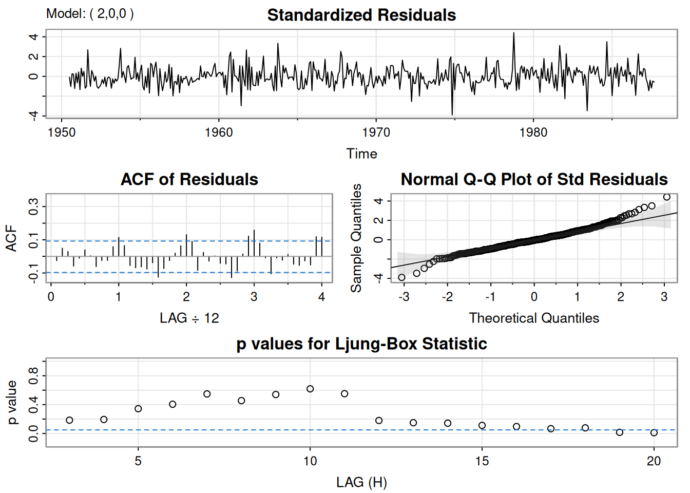 sigma^2 estimated as 0.7986: log likelihood = -195.98, aic = 399.96
