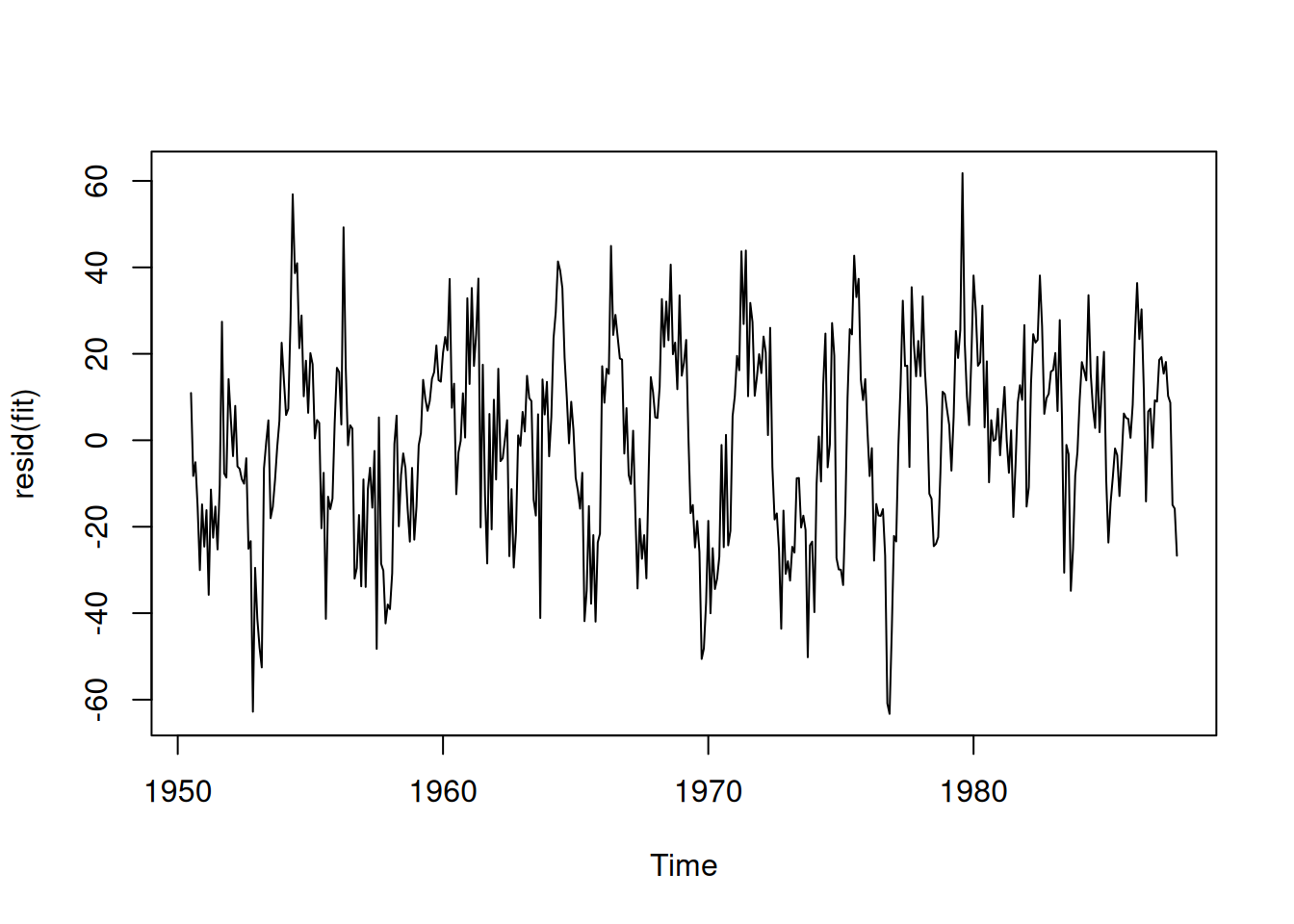 # Coeficientes típicos: ar1 ~ -0.96, ma1 ~ 0.95, ambos "significativos"\[ \begin{equation*} \phi(z)=1-\phi_1 z-\cdots-\phi_p z^p,\quad \phi_p\neq 0; \end{equation*} \]