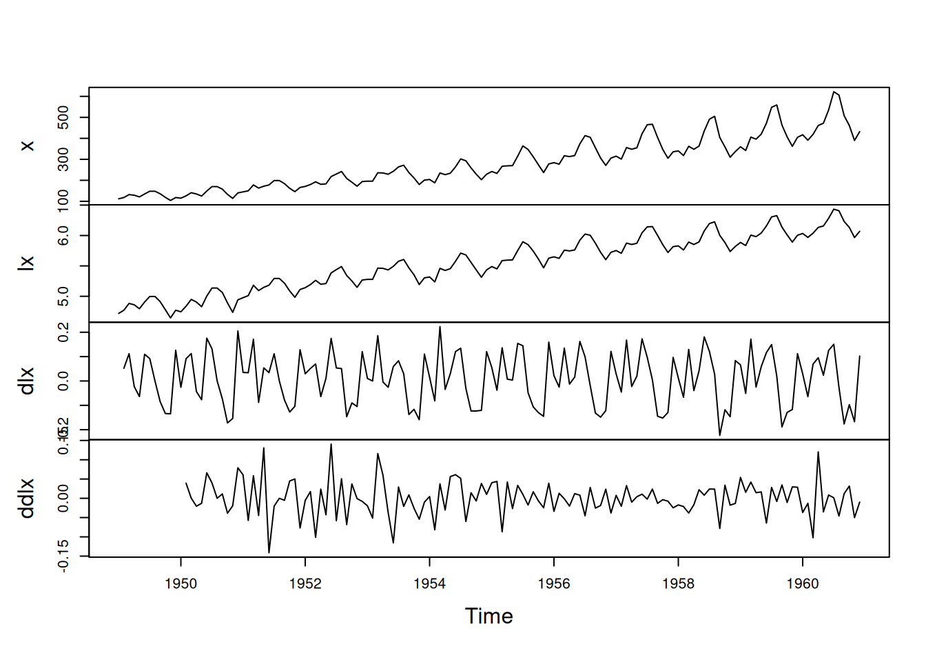 plot.ts(cbind(x,lx,dlx,ddlx), main="")