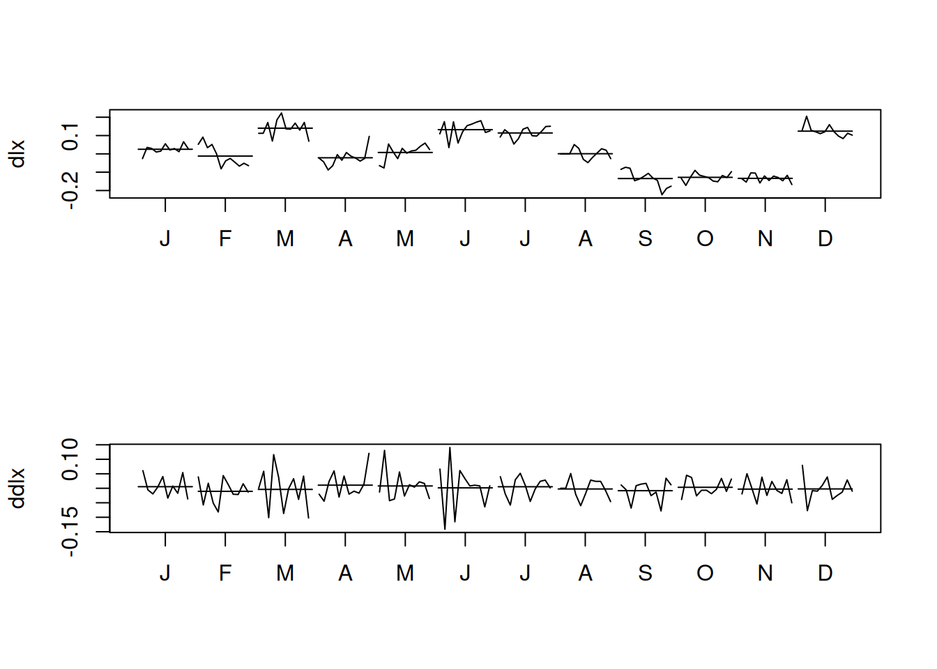 monthplot(dlx); monthplot(ddlx)