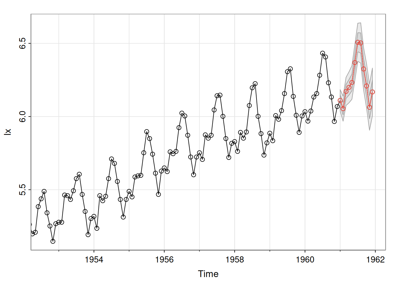 sarima.for(lx, 12, 0,1,1, 0,1,1,12)