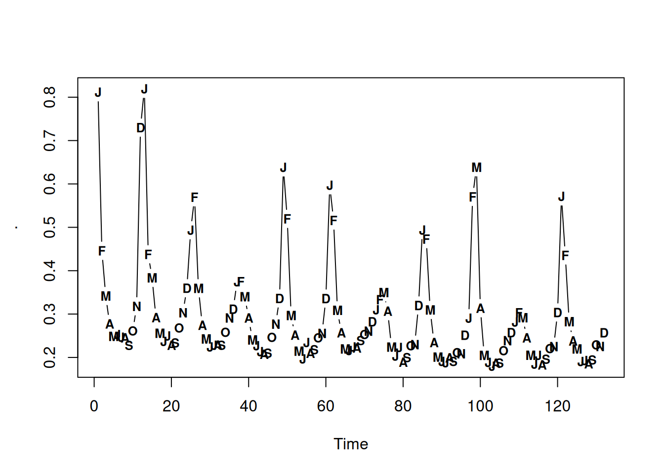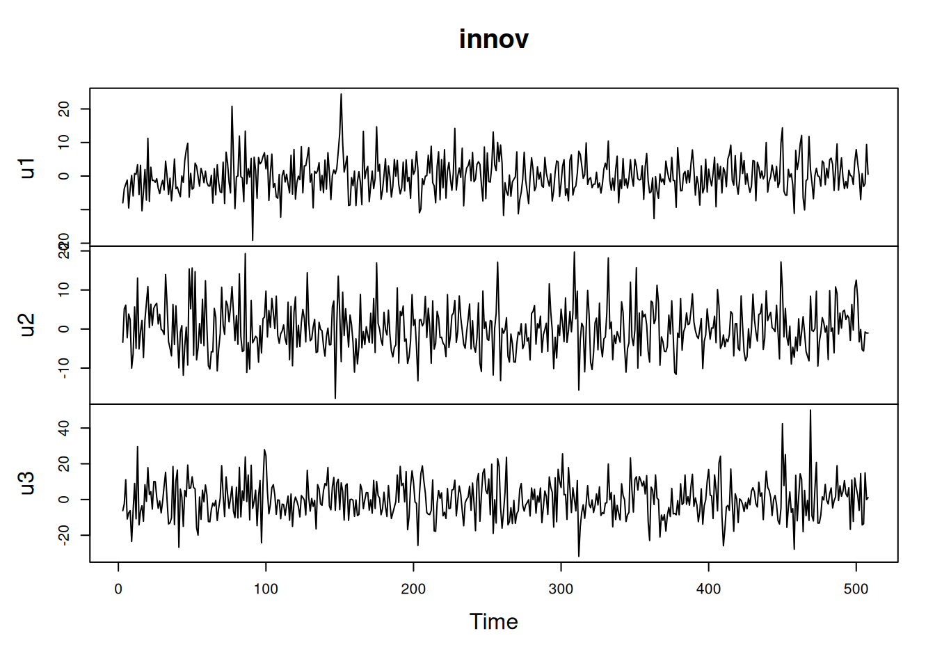 # Innovaciones y diagnóstico (no mostrado)innov <-t(resid(fit)); plot.ts(innov); acf(innov, na.action = na.pass)