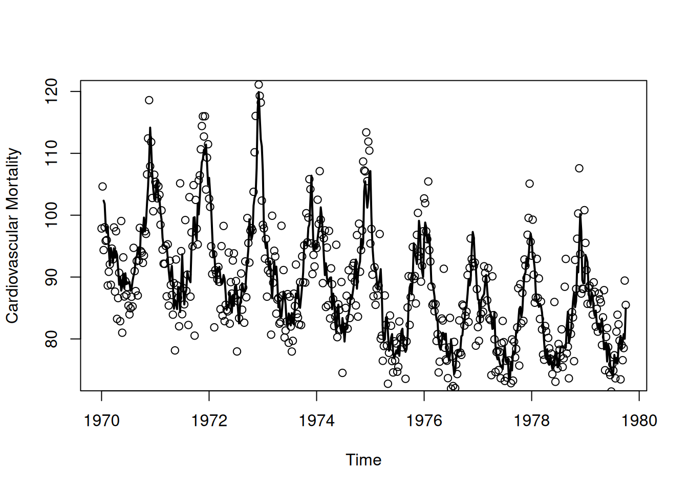 cmort = cmort.l1 + tempr.l1 + part.l1 + const + trend