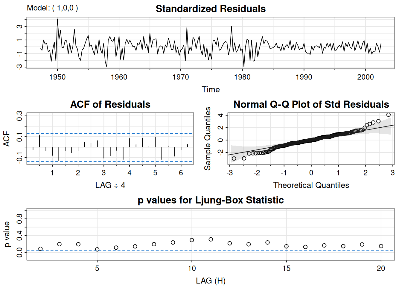 \] donde \(\Gamma_{pp}={\Gamma(i-j)}_{i,j=1}^p\). Errores estándar a partir de \(\hat{\Sigma}_w) y (\hat{\Gamma}_{pp}\).