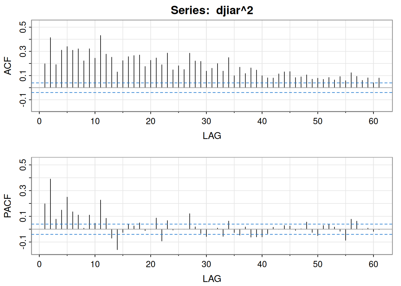 r_t^2=\alpha_0+\alpha_1 r_{t-1}^2+v_t,\quad v_t=\sigma_t^2(\epsilon_t^2-1),